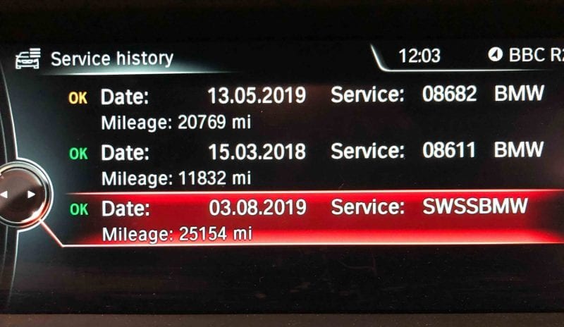 Once any service works have been completed, a digital service entry will have been created as shown above and all data is now held with BMW Germany. All service book data will be stored within your vehicle’s service book and can be found by navigating through your onscreen menu to Service History.